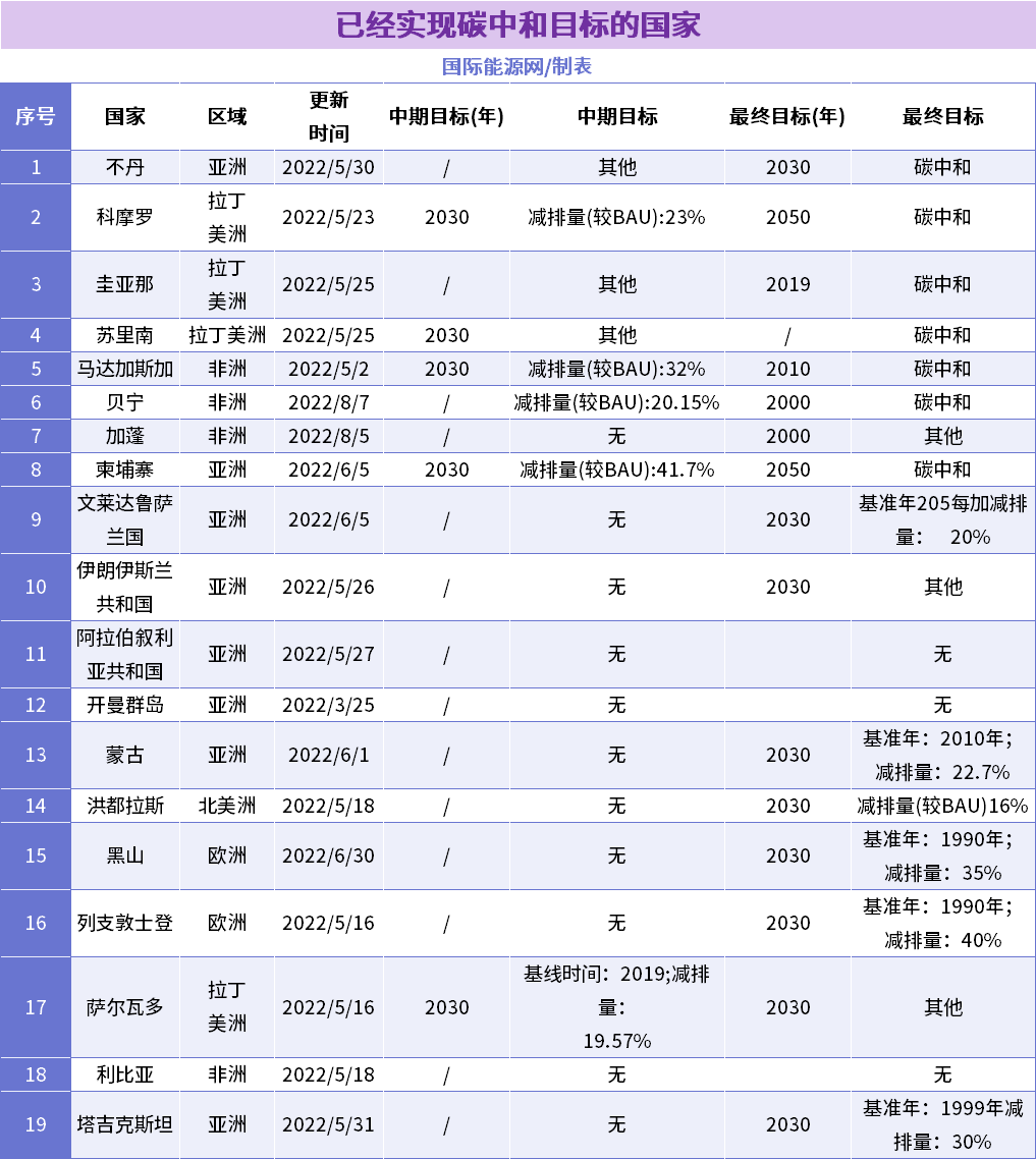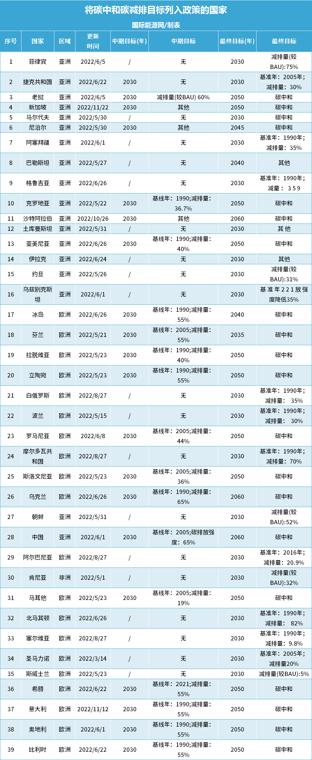 当前,全球国家已陆续设立了符合各国国情的双碳目标。主要的发达经济体和部分发展中经济体已经实现了碳达峰,部分发达经济体已经提出了实现碳中和的预计年份,实际上有138个国家设定了碳中和目标,其余的国家设定了碳减排量目标,以及部分国家还未设定目标。