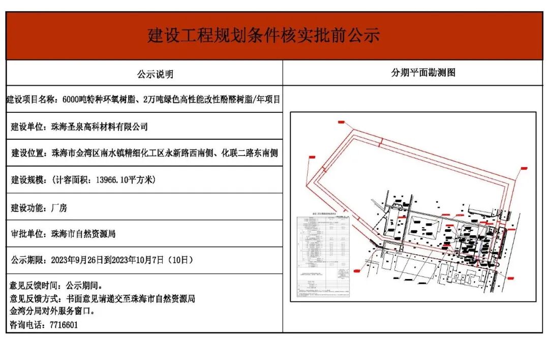 项目名称:6000吨特种环氧树脂、2万吨绿色高性能改性酚醛树脂项目